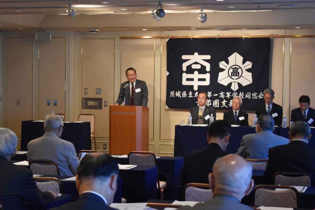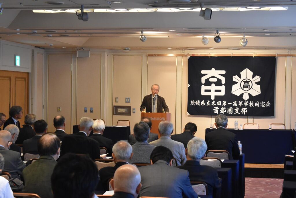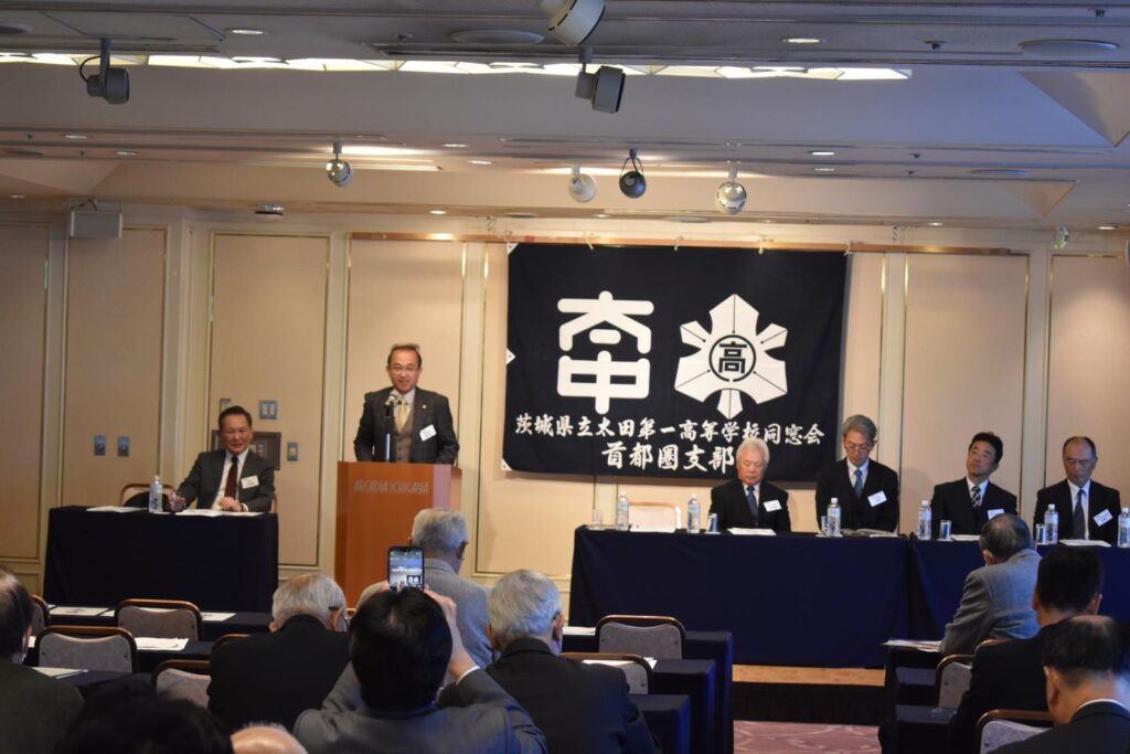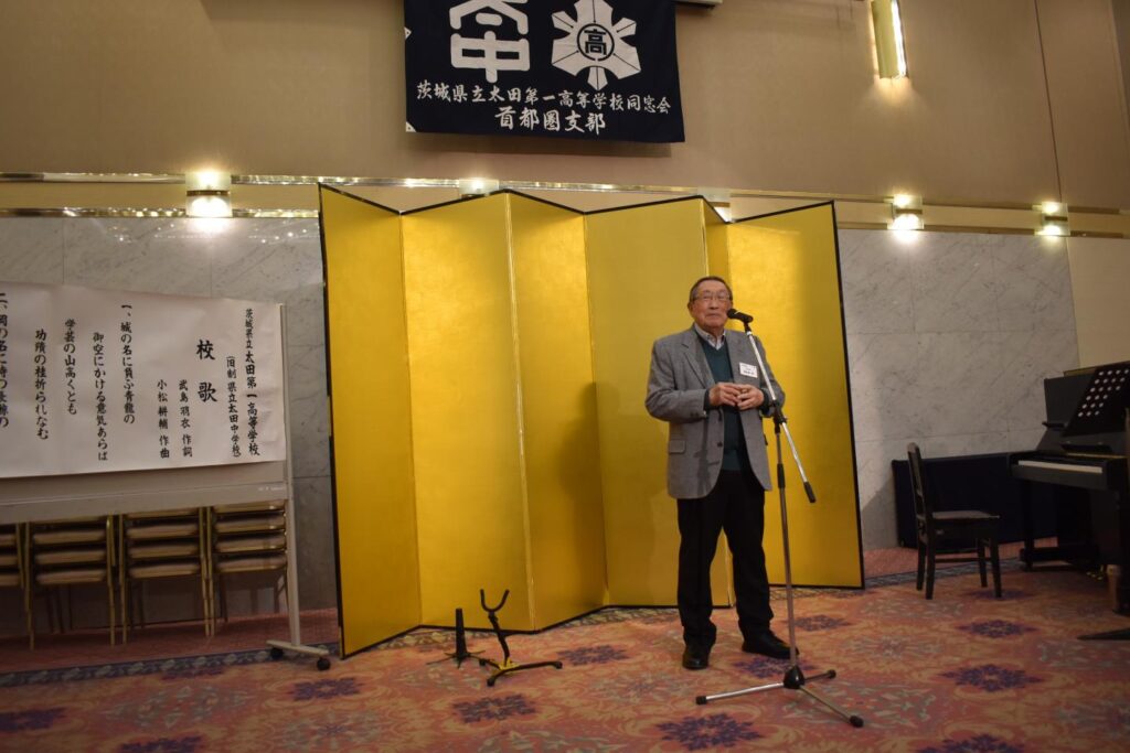 京浜鯨岡会の 小祝 会長の 挨拶に続き、ご来賓の 藤田 常陸太田市長、秋山 同窓会会長、谷津 校長 より、祝辞を賜りました。