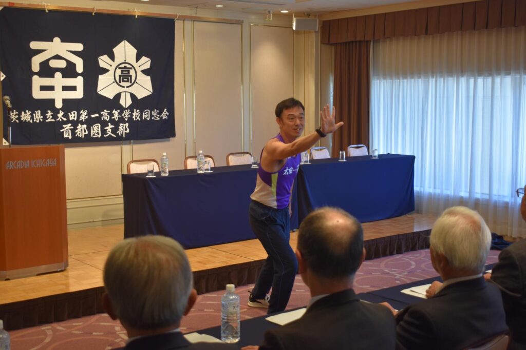 最後に、平成10年卒の山﨑さんより、座ったままでもできる体操をご指導いただき、会場を大いに盛り上げていただきました。
