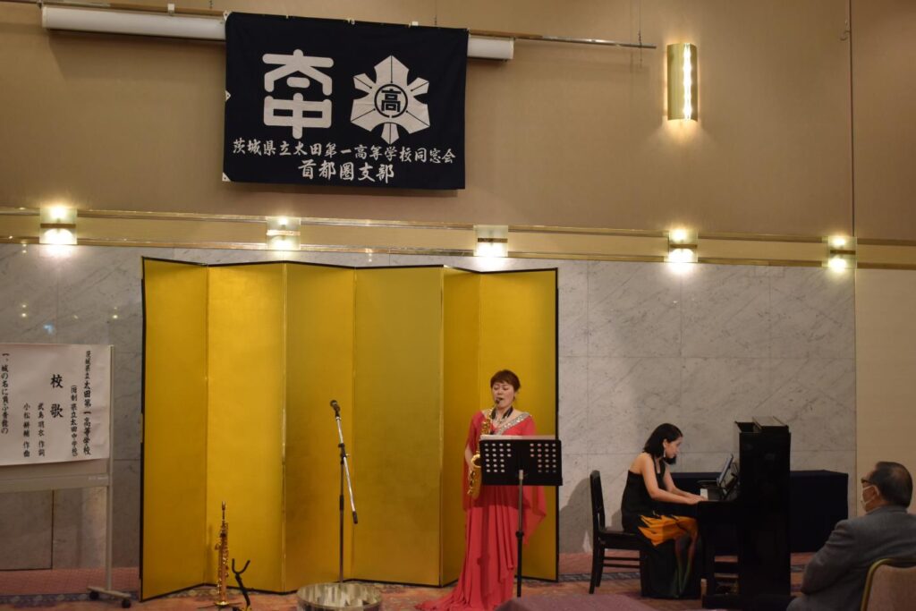 校歌斉唱では、サクソフォンとピアノの生演奏が加わり、非常に豪華で心に残る校歌斉唱となりました。