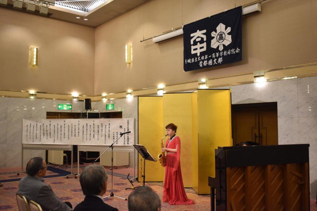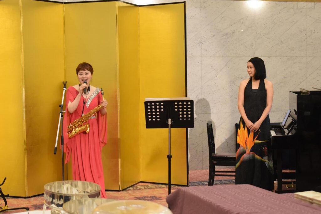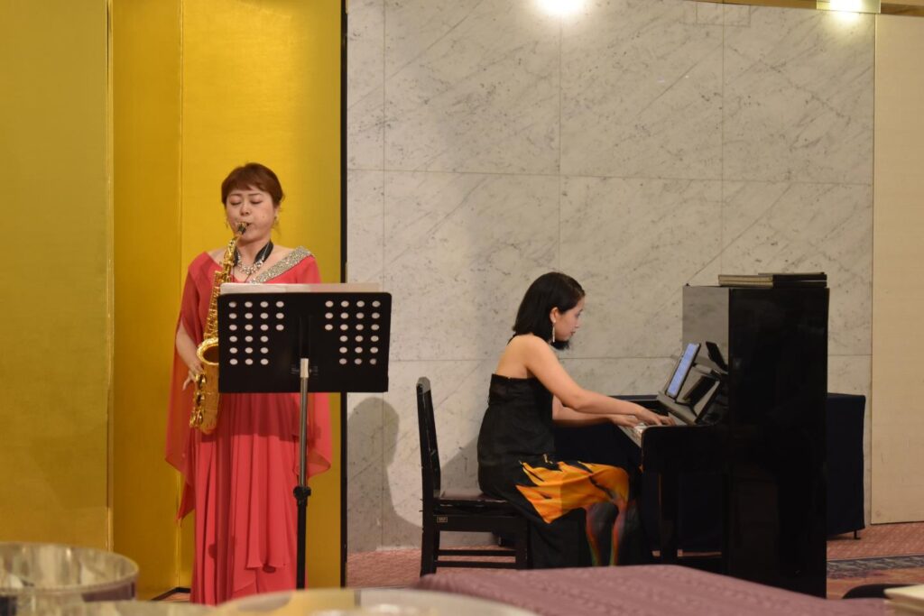 サクソフォニストの 塙 美里さん、ピアニストの 和田 萌子さんによる素敵な演奏で、懇親会の幕が開きました。