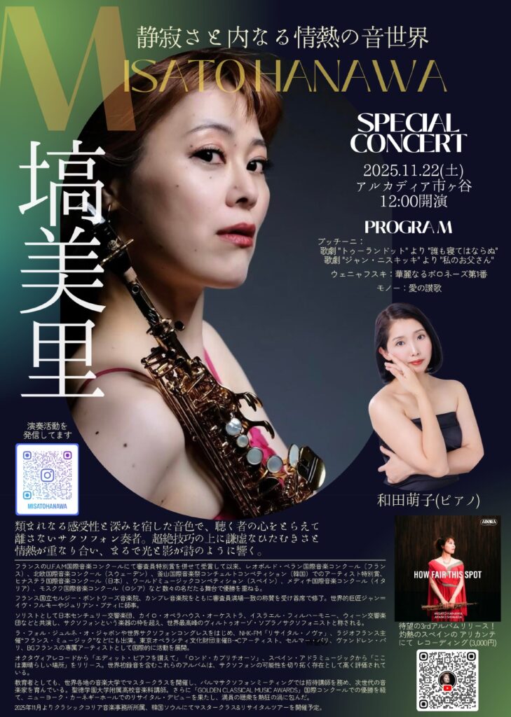 サクソフォン演奏 塙 美里 様 (平成14年卒:世界的に活躍するサクソフォニスト)